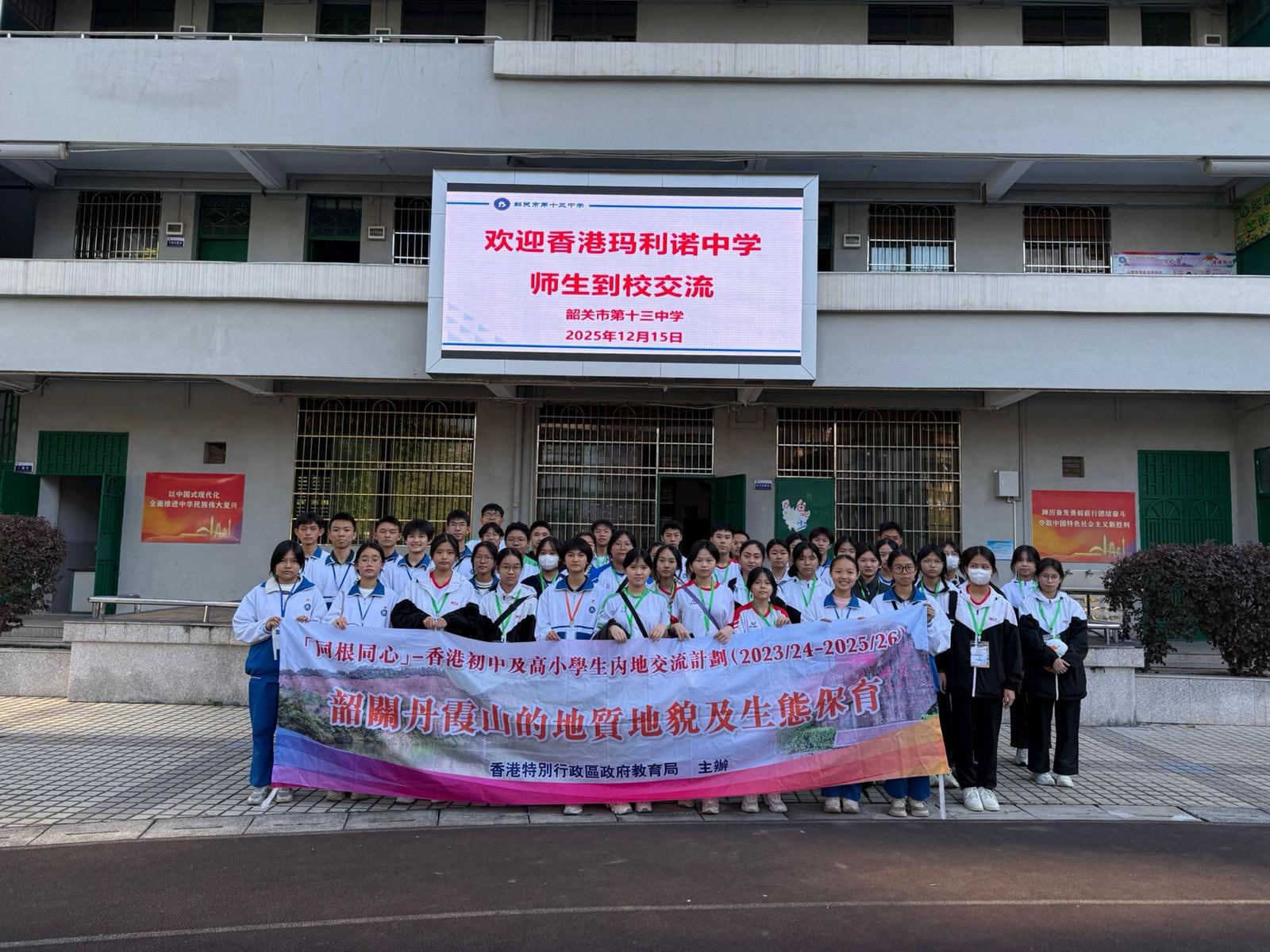 30 位中二及中三同學積極參與三天的丹霞山考察, 透過參觀中草藥、香草及向日葵種植區、視藝作品、交流分享環節及籃球友誼賽,與韶關市第十三中學的初中學生加深認識,了解當地的學習生活。本校學生在丹霞山考察及參觀地質博物館,認識到國家如何保護世界地質公園的丹霞地貌及各種珍貴的動植物,開闊了眼界。