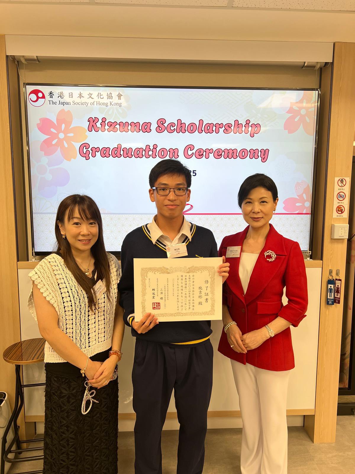 本校5A班施吉彬同學參加香港日本文化協會主辦的「KIZUNA絆獎學金計劃」日本語學習課程 成功獲頒優秀成績證書。