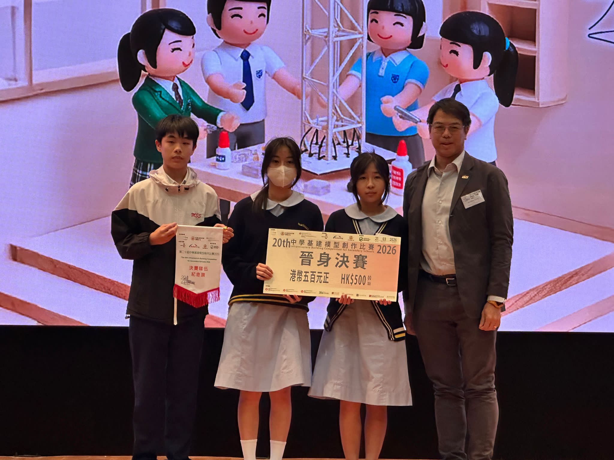 在青衣IVE舉辦的第二十屆中學基建模型創作比賽2026,本校共派出三隊參加比賽,其中中五和中四級成功在撓度測試中獲得晉身決賽資格,取得前24隊的排名。恭喜中五隊和中四隊的同學!