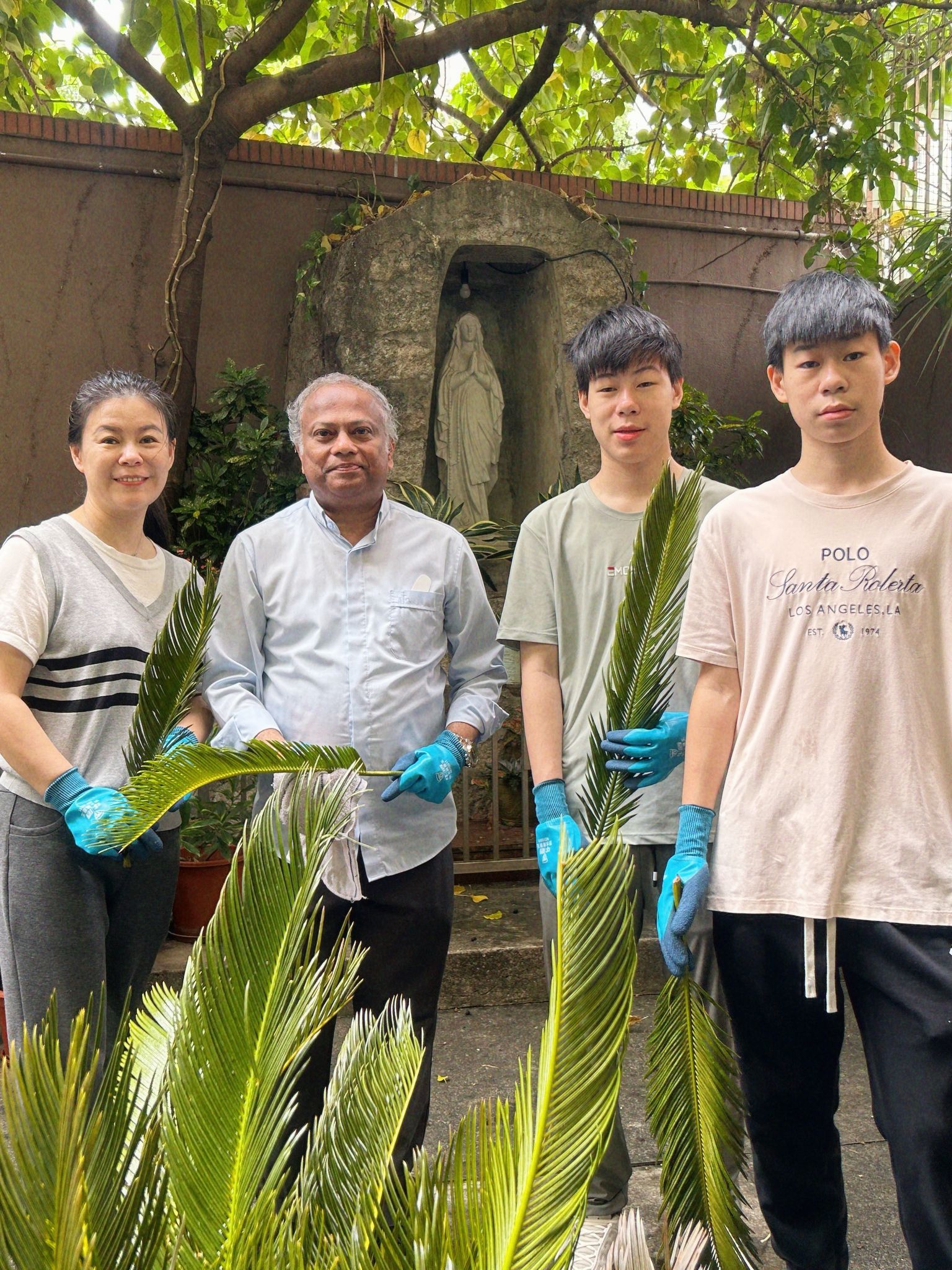 2026年3月28日,宗教培育組老師陪同學生、義工家長一起到耶穌復活堂區,為聖枝主日準備,進行清洗聖枝的愛德服務。