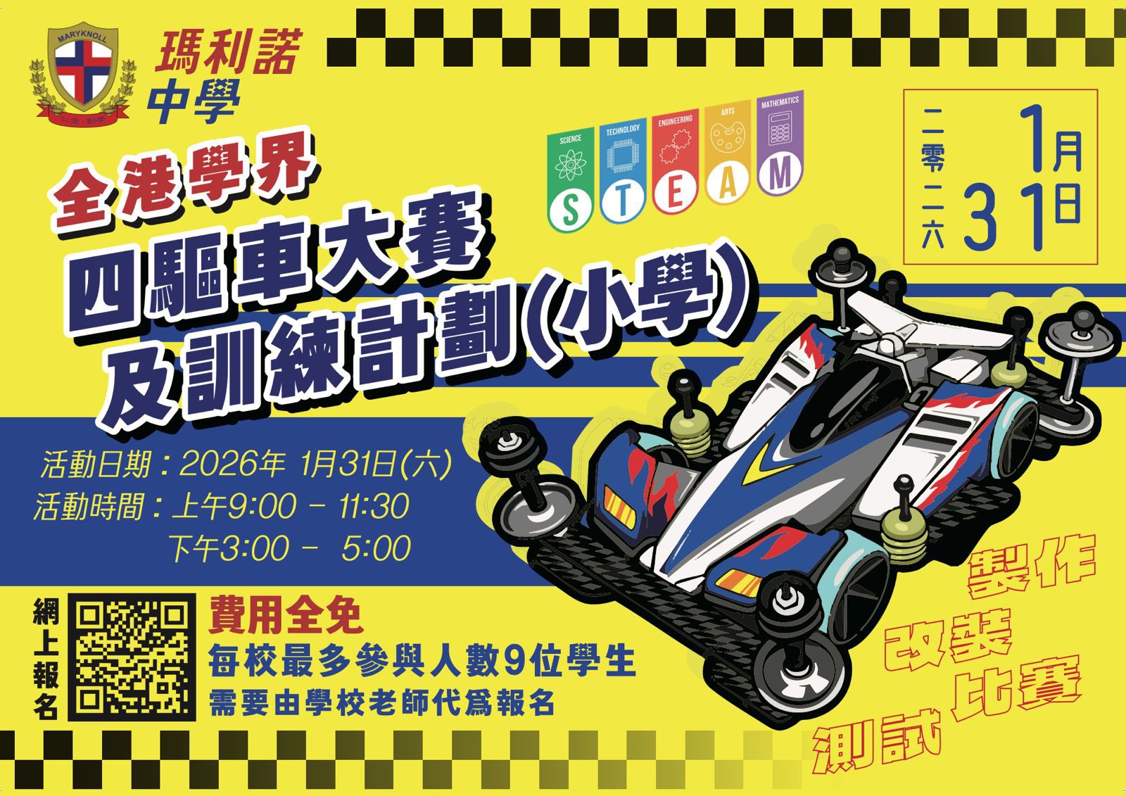 我們誠意邀請所有對科技創新有興趣的小學學生參加本校舉辦的全港學界四驅車大賽及訓練計劃(小學)!