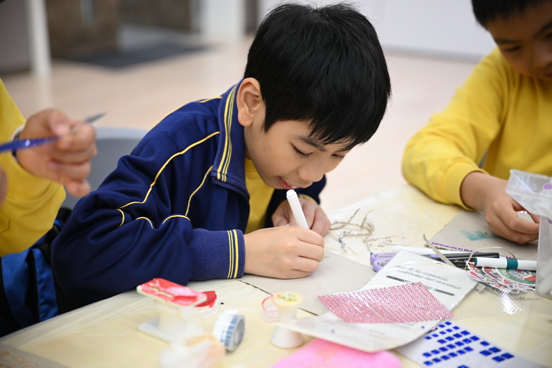 小學生在本校師生帶領下,參與再造紙聖誕卡製作工作坊及英語學習活動,親身體驗自主學習與跨學科協作的樂趣。