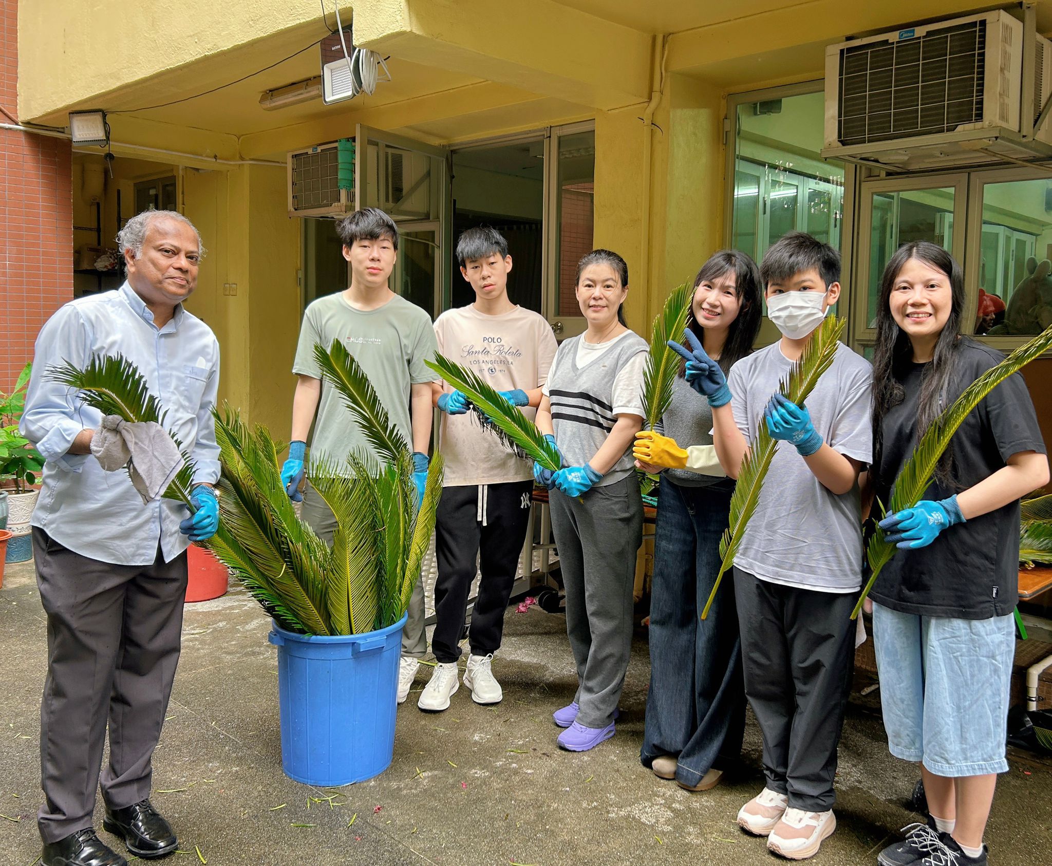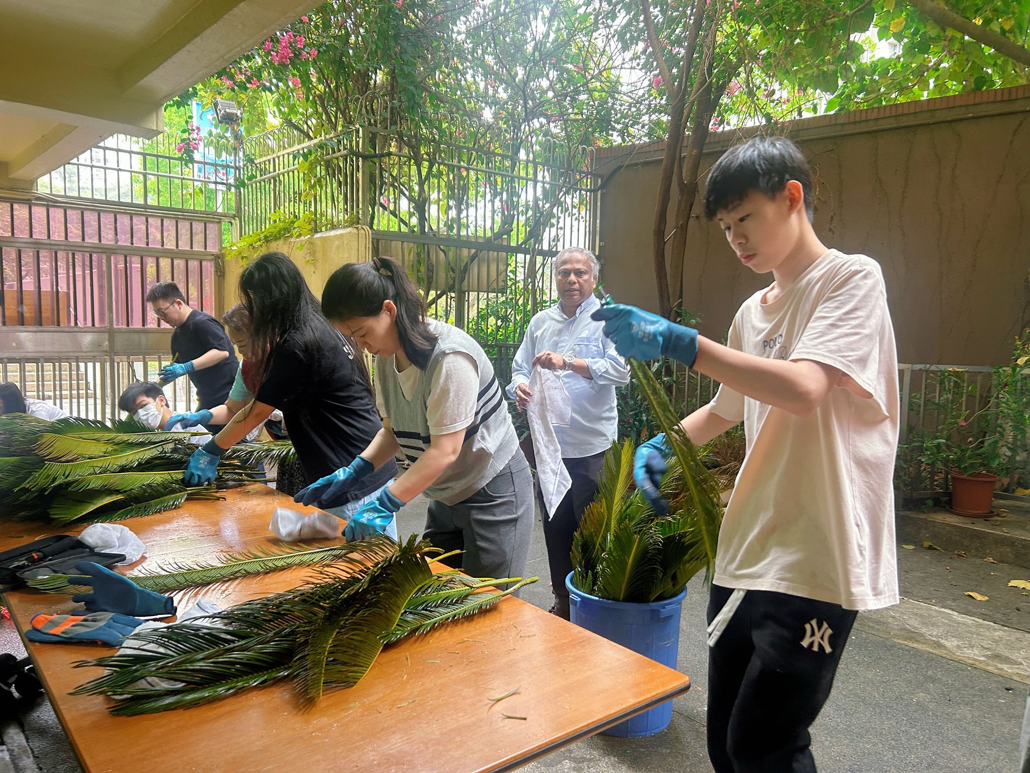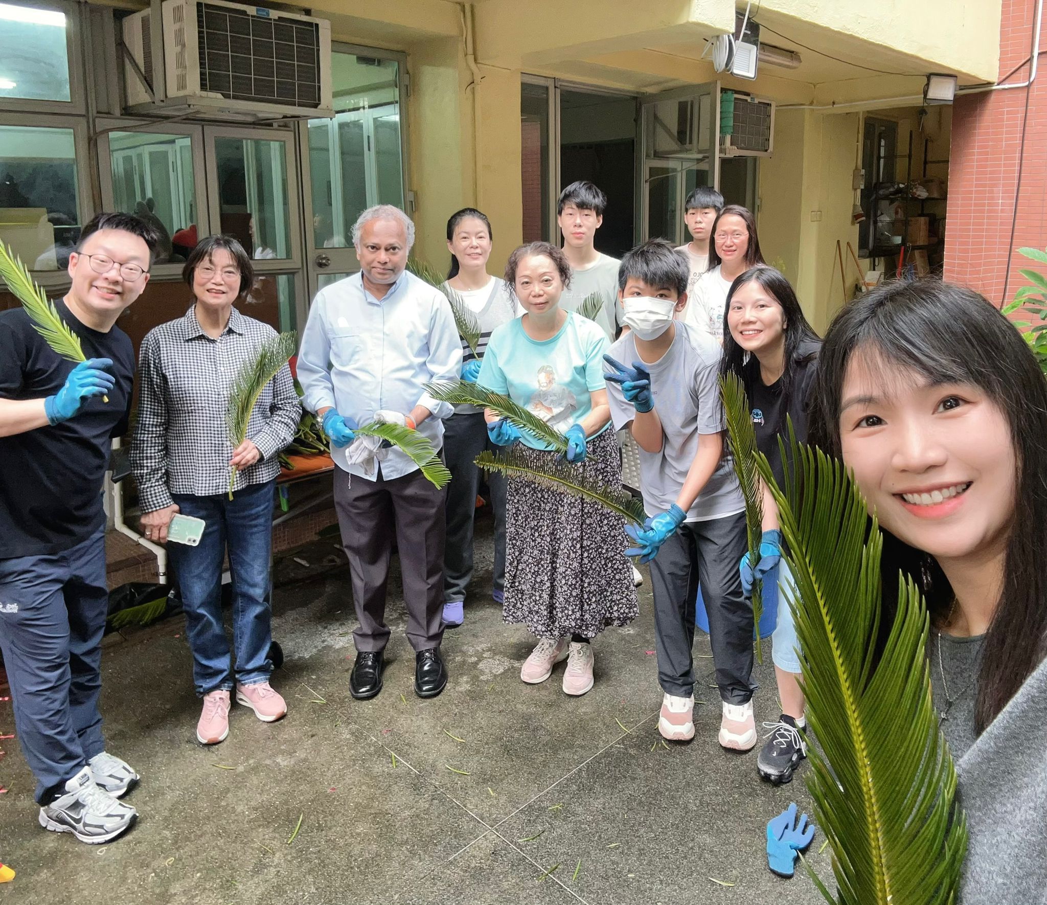 2026年3月28日,宗教培育組老師陪同學生、義工家長一起到耶穌復活堂區,為聖枝主日準備,進行清洗聖枝的愛德服務。