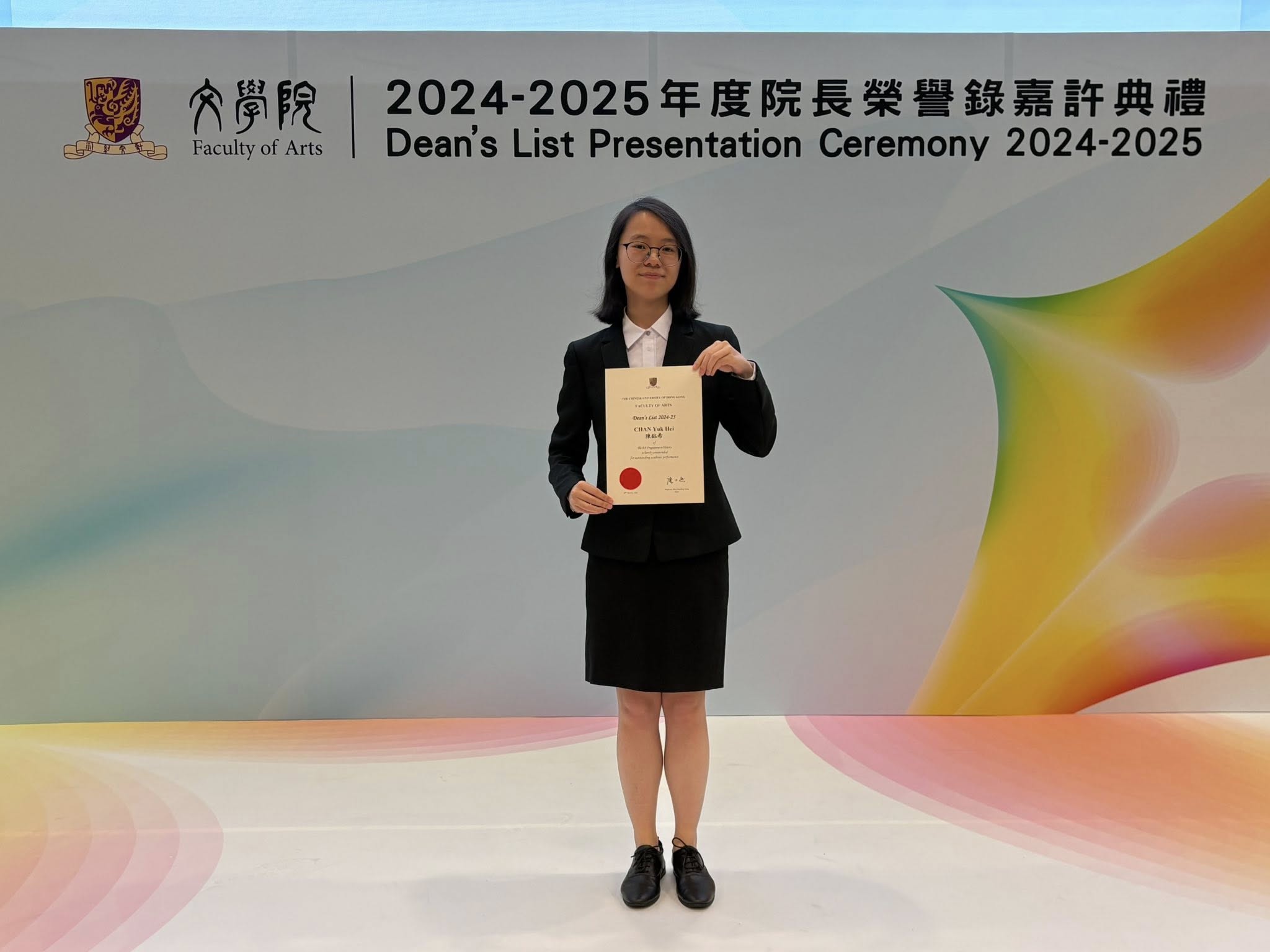 恭喜陳鈺希同學連續三年榮登香港中文大學文學院院長榮譽錄Dean’s List