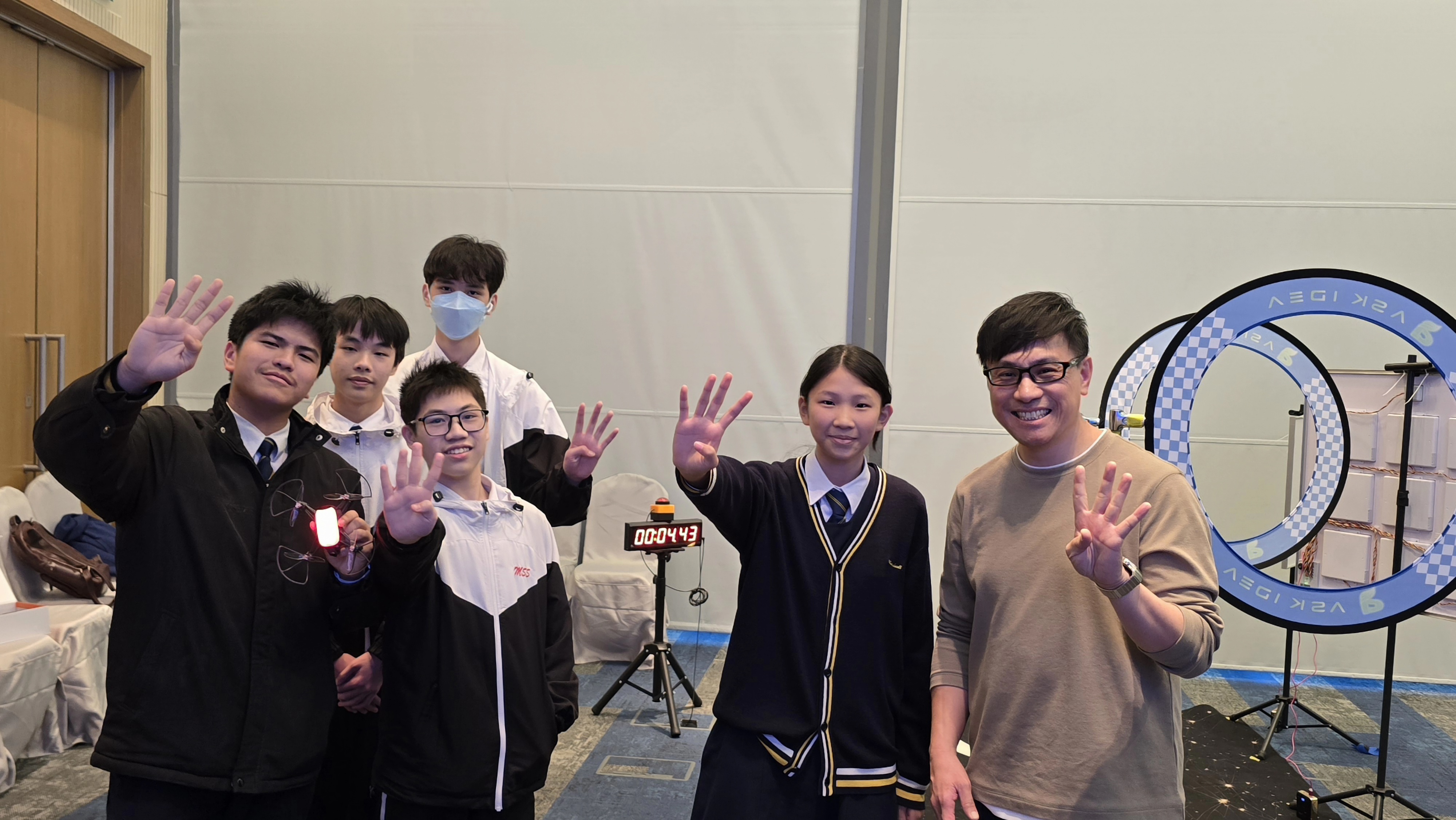 3B 蕭潤霖、4D 何子豪、4D 郭穎妍、4D 劉逸東、4D 鄧卓軒參加全港學界無人機挑戰賽,在AR射擊+手控及編程+手控賽事中均獲得三級認證,恭喜得獎同學。